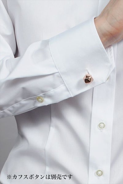 レディースシャツでも、袖元はすっきりしたまま、ダブルカフスのようにカフスボタンの上品なアクセントとオシャレを楽しむことが出来ます。