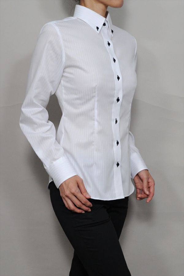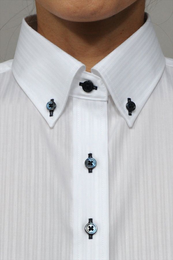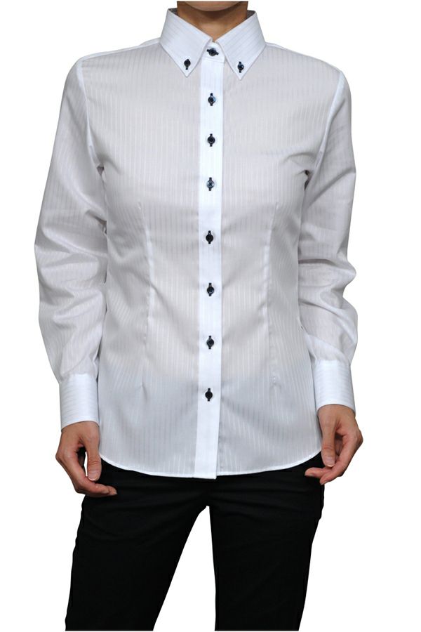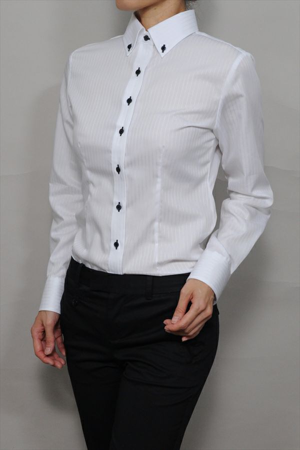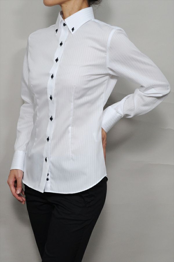 ボタンダウンとスリムなスタイルが、シャープな印象のレディースシャツです。