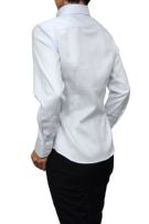 レディースシャツでも、カフスボタンの上品なアクセントとオシャレを楽しむことが出来ます。