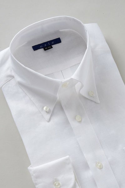 衿には衿立ち・衿開きのよいロールの美しい、大きからず小さからずの使い勝手のよいボタンダウン型を採用しました。