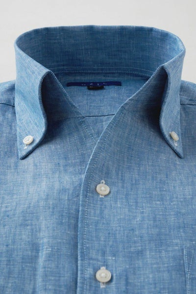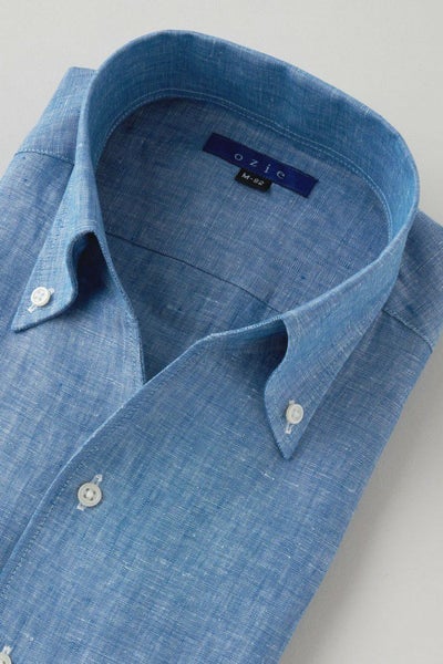 リネンシャツといえどもドレスシャツ(ワイシャツ)の仕様で生産しているため、衿元しっかり!