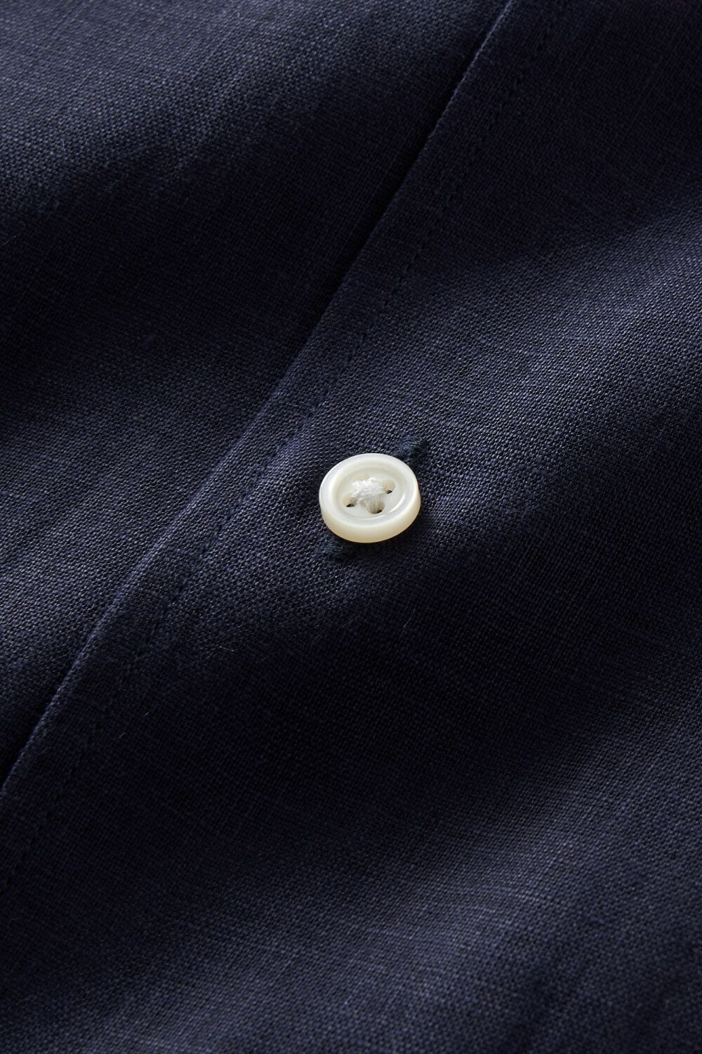 リネンシャツといえどもドレスシャツ(ワイシャツ)の仕様で生産しているため、衿元しっかり!