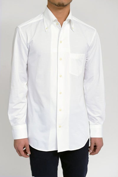 衿開きのきれいなノータイ専用オープンカラーのイタリアンカラー&ボタンダウン。