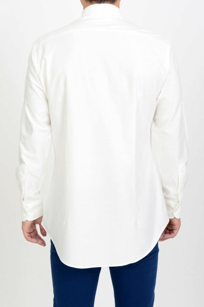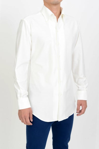 衿型は、衿開きのきれいなノータイ専用オープンカラーのイタリアンカラー&ボタンダウン。