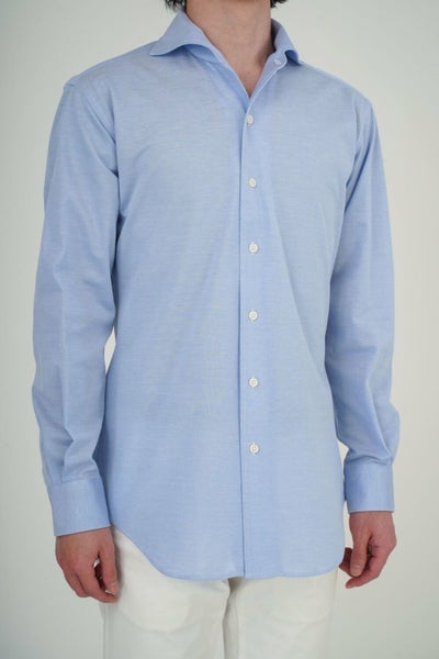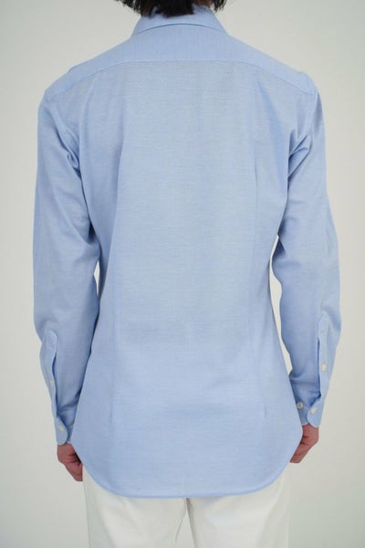 見た目はワイシャツの定番生地ロイヤルオックスフォードのようで、通気性がいい“鹿の子“