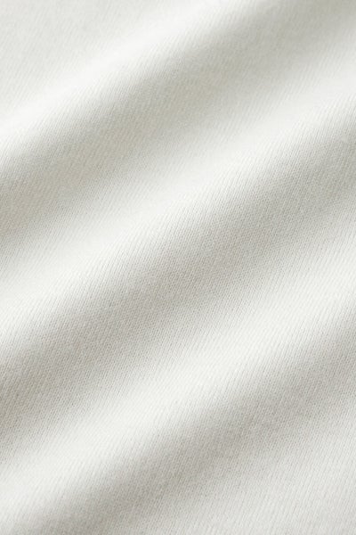 天竺の柔らかい風合いを残しつつ、型崩れしにくいのこと、また、通常のニットより生地のツヤや自然な光沢感が出ることが大きな特徴です。