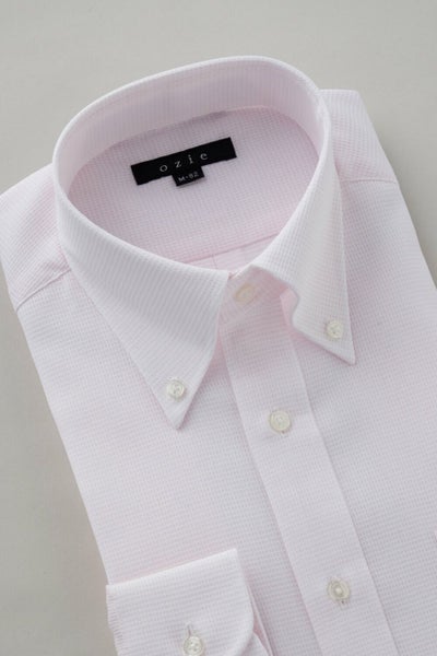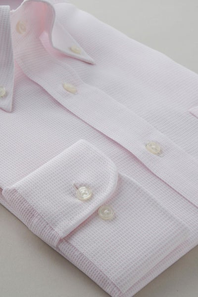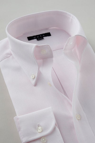 衿には衿立ち・衿開きのよいロールの美しい、大きからず小さからずの使い勝手のよいボタンダウン型を採用しました。