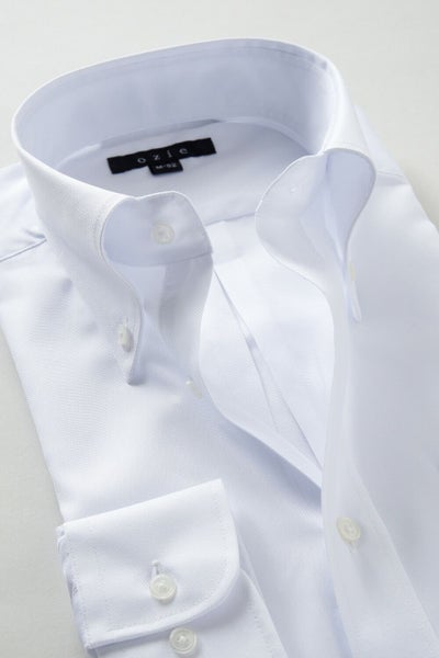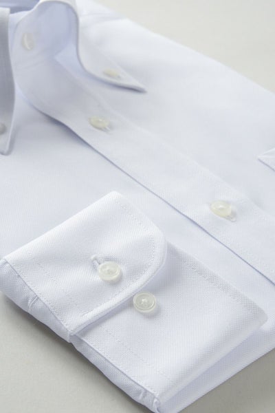 衿には衿立ち・衿開きのよいロールの美しい、大きからず小さからずの使い勝手のよいボタンダウン型を採用しました。