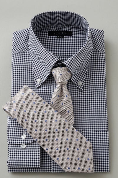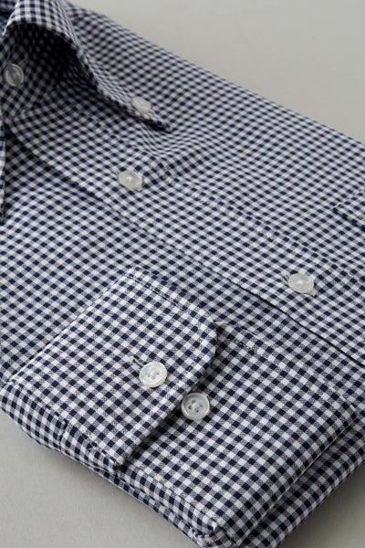 後ろ身頃はボタンダウンの代表的ディティール、センターボックスプリーツにて生産しました。