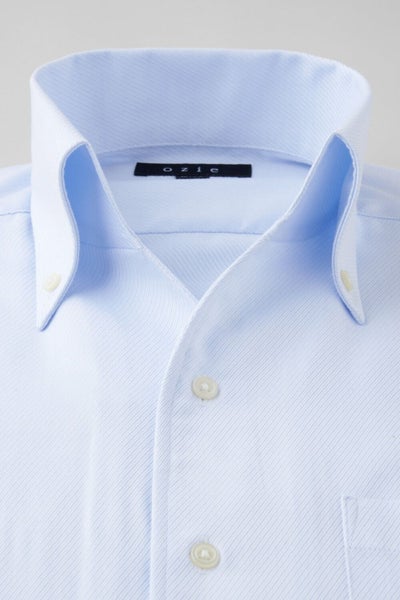 結果、光沢感・ソフト感にあふれ着心地のいい、さらに洗濯後のお手入れが楽といった、相反する事象を併せ持った、ozieの別注生地ならではの上質シャツに仕上がりました。