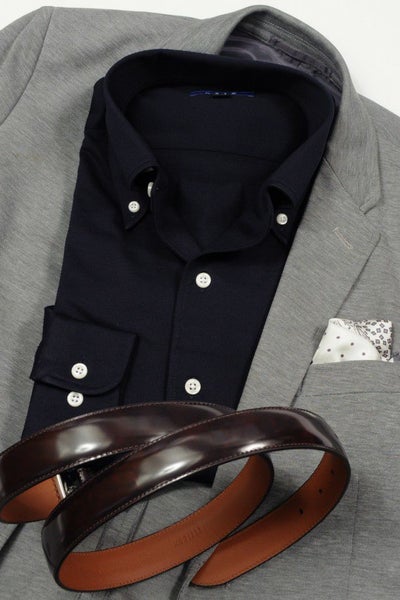 衿開きのきれいなノータイ専用オープンカラーのイタリアンカラー&ボタンダウン。