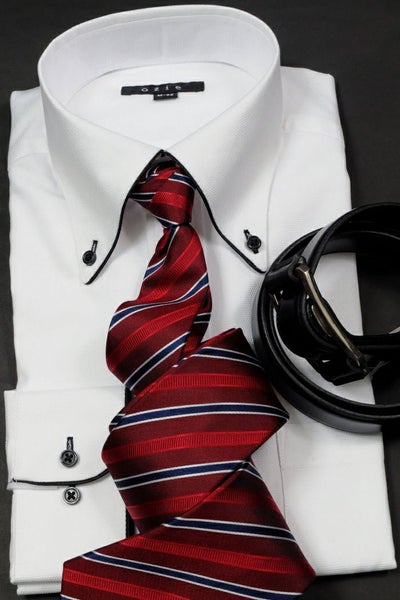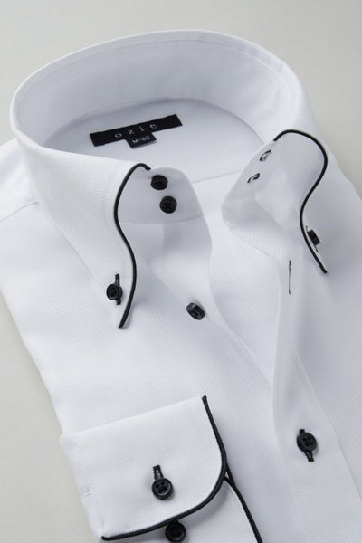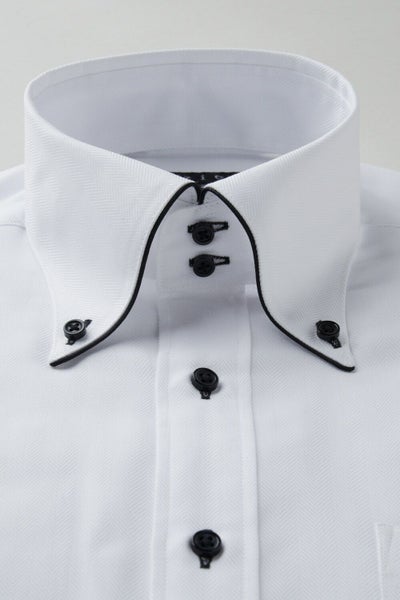 見栄え・着心地抜群+お手入れ楽々+環境に優しいエコ素材使用!?衿・カフスにサテンテープパイピングのドゥエボットーニBDシャツ