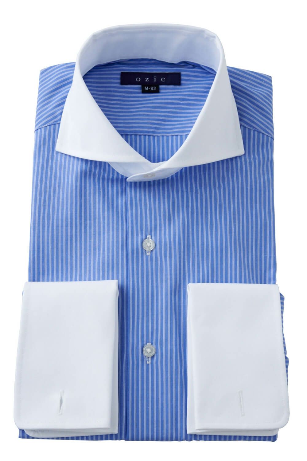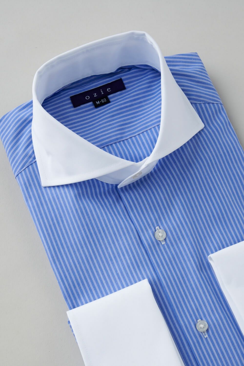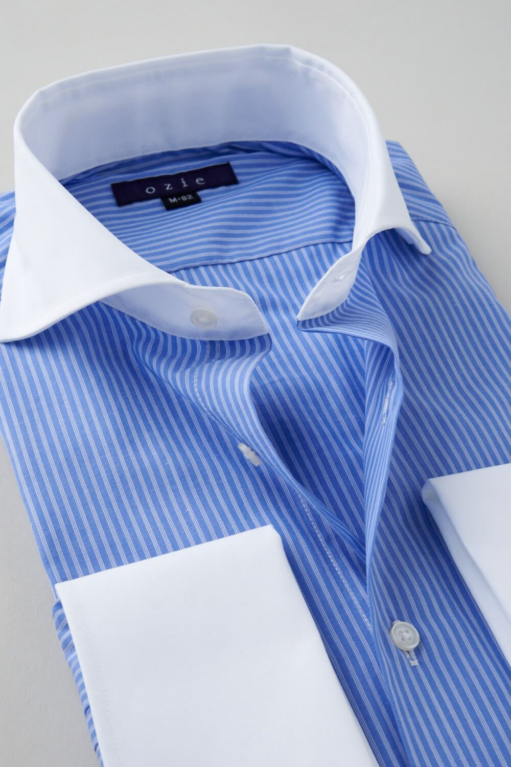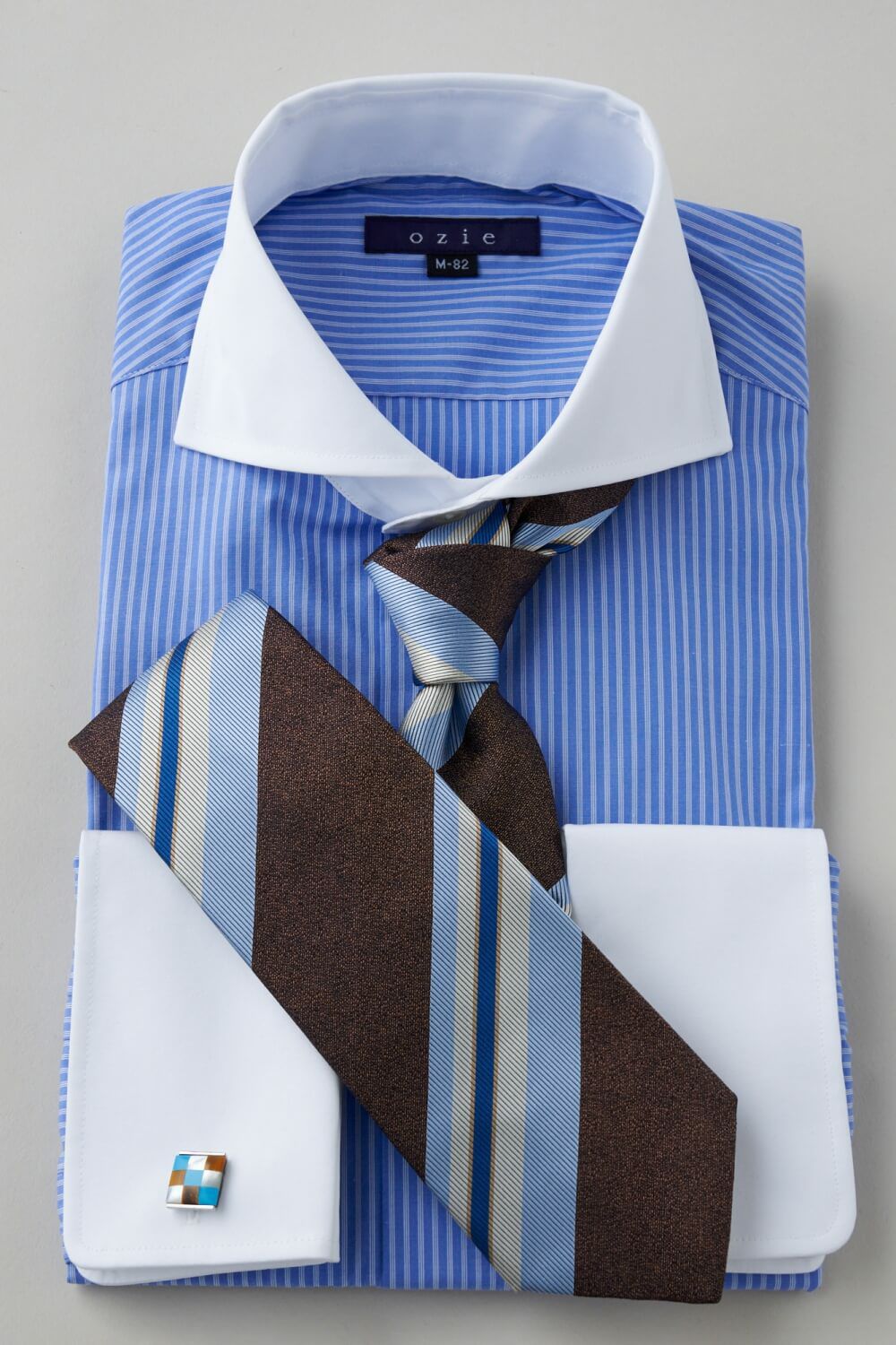 そこでozieではネクタイとの相性がいいホリゾンタルカラーをダブルカフス仕様にして生産。