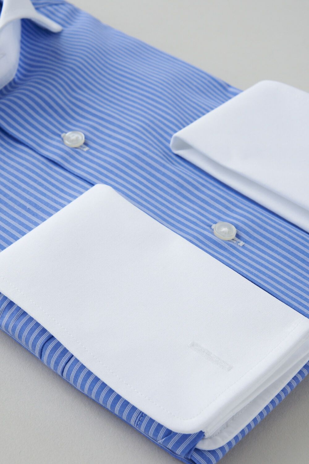 希少性の高いホリゾンタルカラーのダブルカフスシャツ