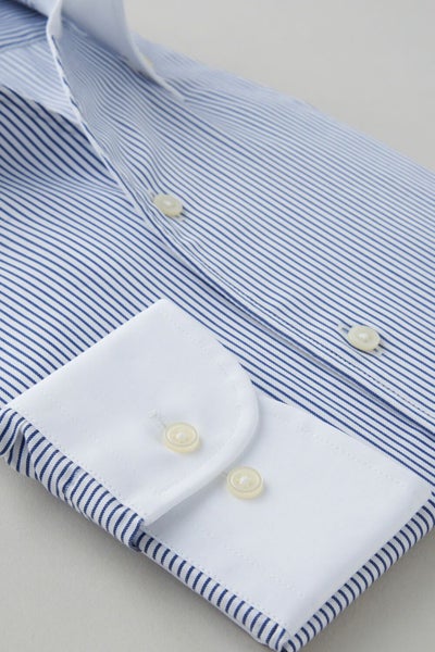ノーネクタイ専用のややカジュアル度の高い商品でありながら、非常にエレガントなシャツです。