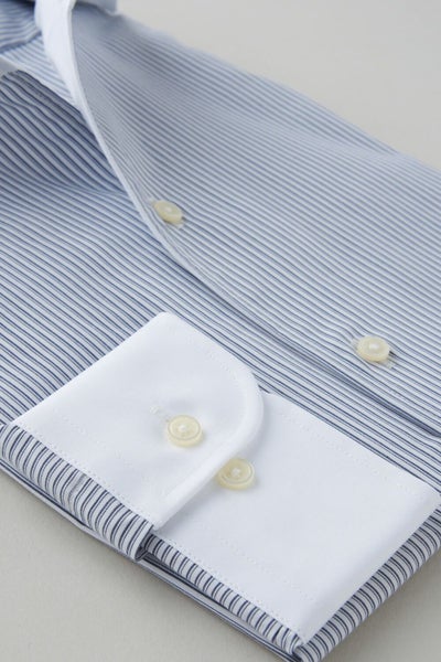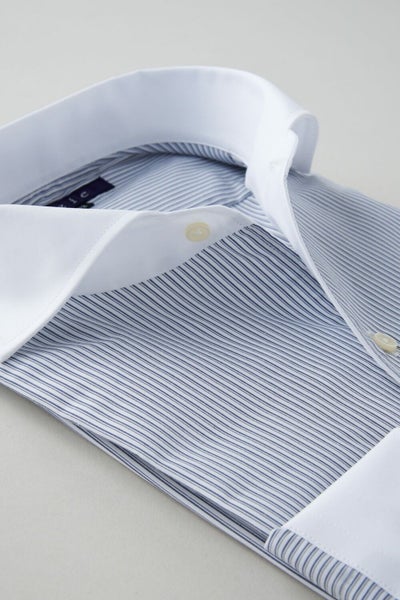 ノーネクタイ専用のややカジュアル度の高い商品でありながら、非常にエレガントなシャツです。