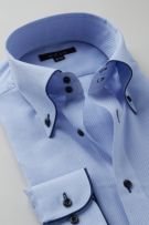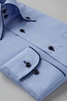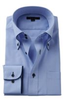 見栄え・着心地抜群+お手入れ楽々+環境に優しいエコ素材使用!?衿・カフスにサテンテープパイピングのドゥエボットーニBDシャツ
