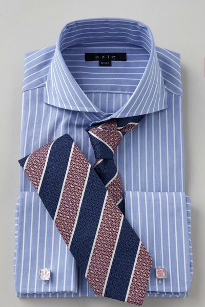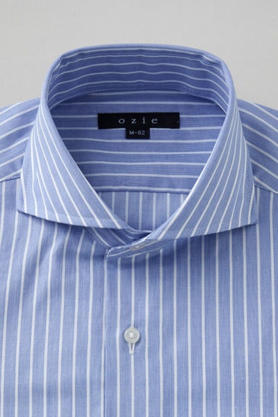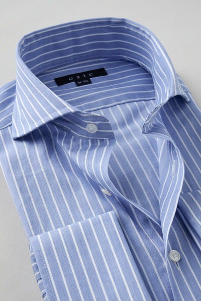 ozieではネクタイとの相性がいいホリゾンタルカラーをダブルカフス仕様にして生産。