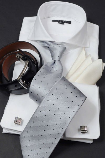 ビジネスシーンにタイドアップで着用するのは当然のこと、ノーネクタイでも様になる使える上質ダブルカフスシャツです。