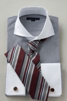 タイドアップ・ノータイOKのホリゾンタルカラー・クレリック・ダブルカフスシャツ