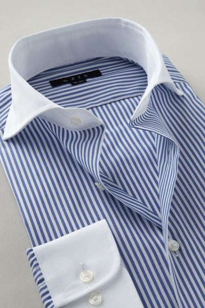 衿の開き角度が大きい、通常のワイドカラーとは一線を画した衿型=それがホリゾンタルカラーシャツ。