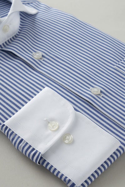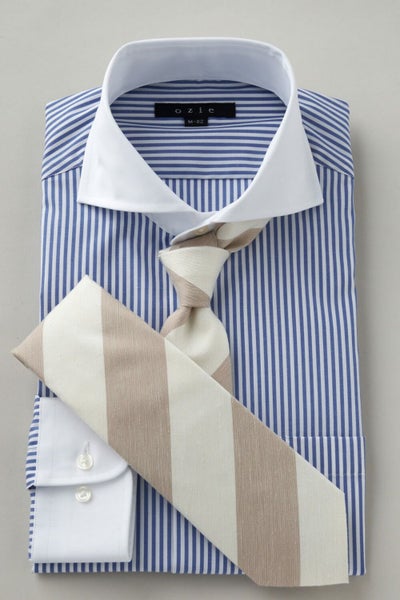 ネクタイ・ノーネクタイ両用の小粋な衿型ホリゾンタル・クレリックシャツ