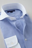 結果、光沢感・ソフト感にあふれ着心地のいい、その上洗濯後のお手入れが楽といった、相反する事象を併せ持った上質シャツに仕上がりました。