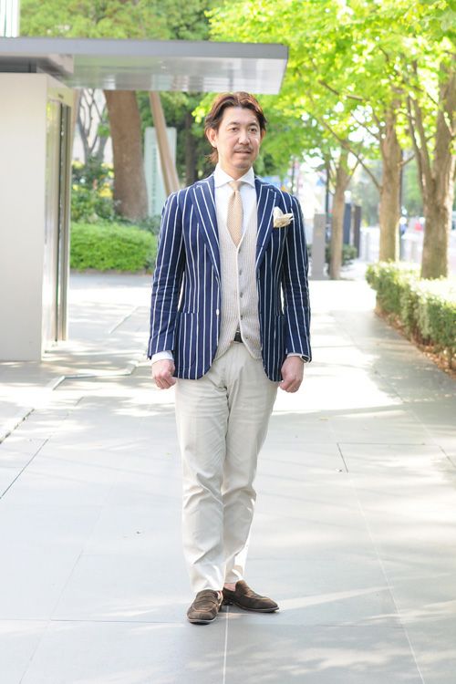 タイドアップで、アンタイドで、そして上品カジュアルとしておすすめなホリゾンタルカラーです。