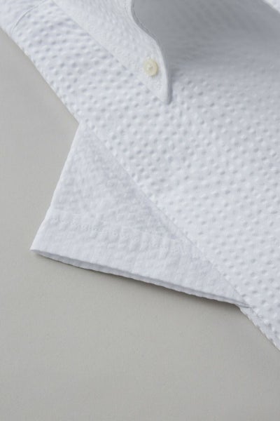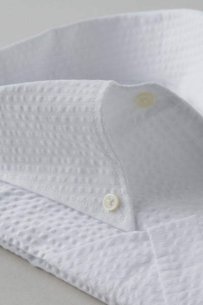 このシャツにはクールマックスのシアサッカーを使用しました。