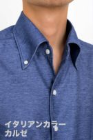 衿型は、衿開きのきれいなノータイ専用オープンカラーのイタリアンカラー&ボタンダウン。