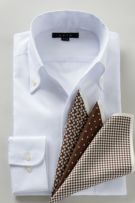 ノーネクタイ専用のややカジュアル度の高い商品でありながら、非常にエレガントなシャツです。