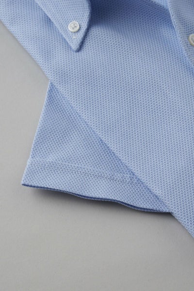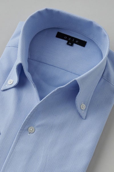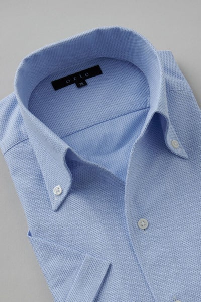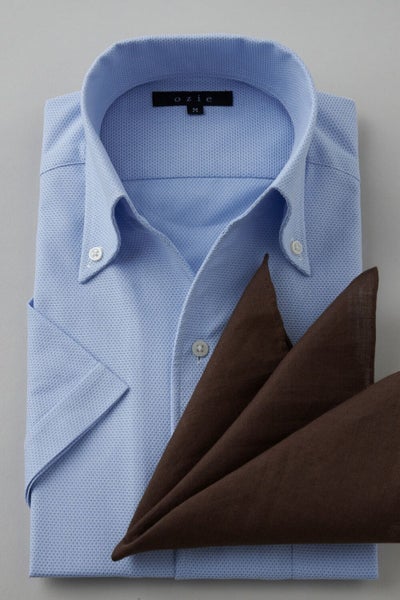見た目はシャツ生地でありながら、ニット生地の鹿の子に近い涼しげな見栄え。