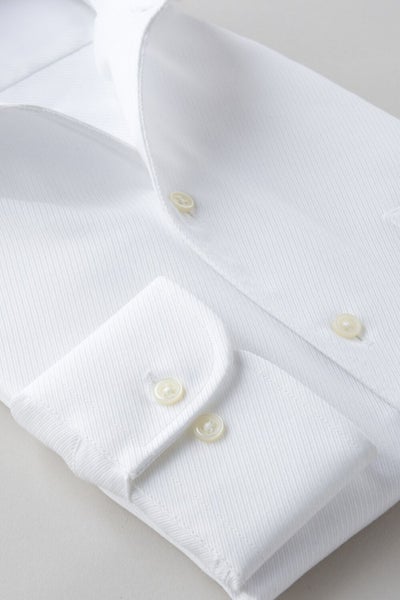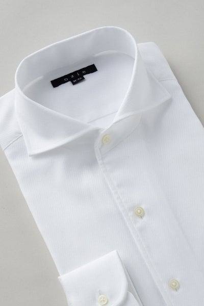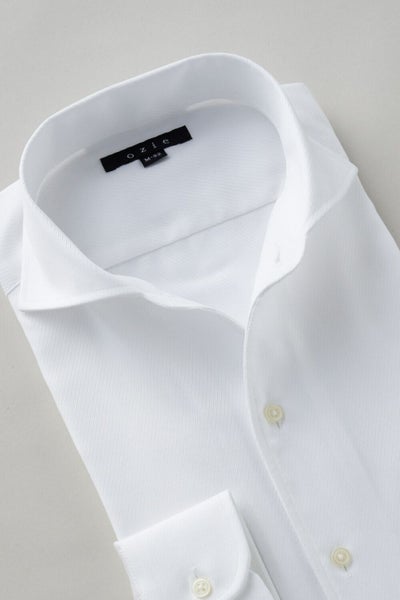 ノーネクタイ専用のややカジュアル度の高い商品でありながら、非常にエレガントなシャツです。