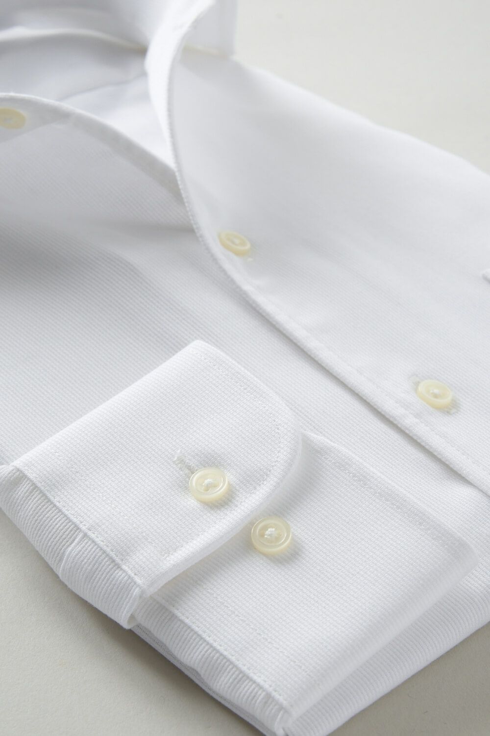 ノーネクタイ専用のややカジュアル度の高い商品でありながら、非常にエレガントなシャツです。