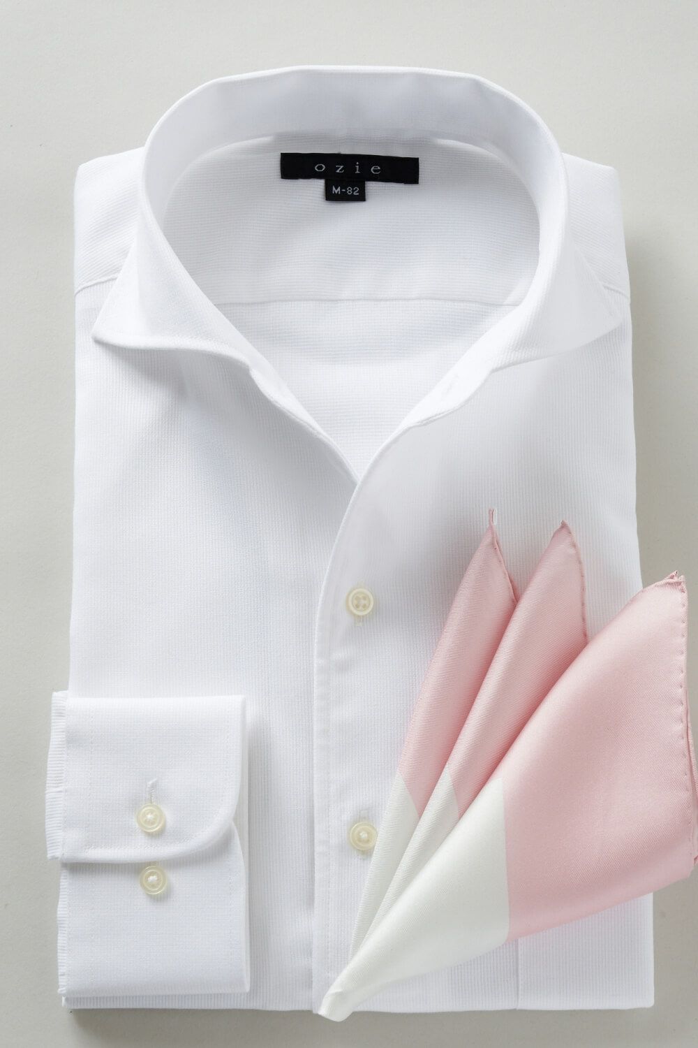 イタリアンカラーと広角なワイドカラーを掛け合わせたスタイリッシュなノーネクタイ専用の衿型です。