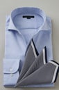 イタリアンカラーと広角なワイドカラーを掛け合わせたスタイリッシュなノーネクタイ専用の衿型です。