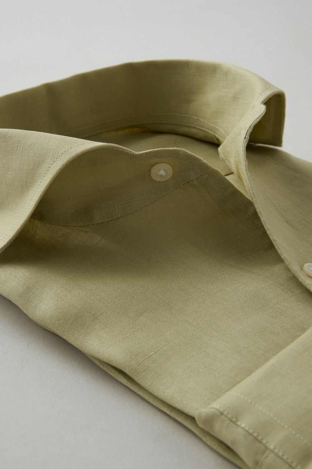 リネンシャツといえどもドレスシャツ(ワイシャツ)の仕様で生産しているため、衿元しっかり!