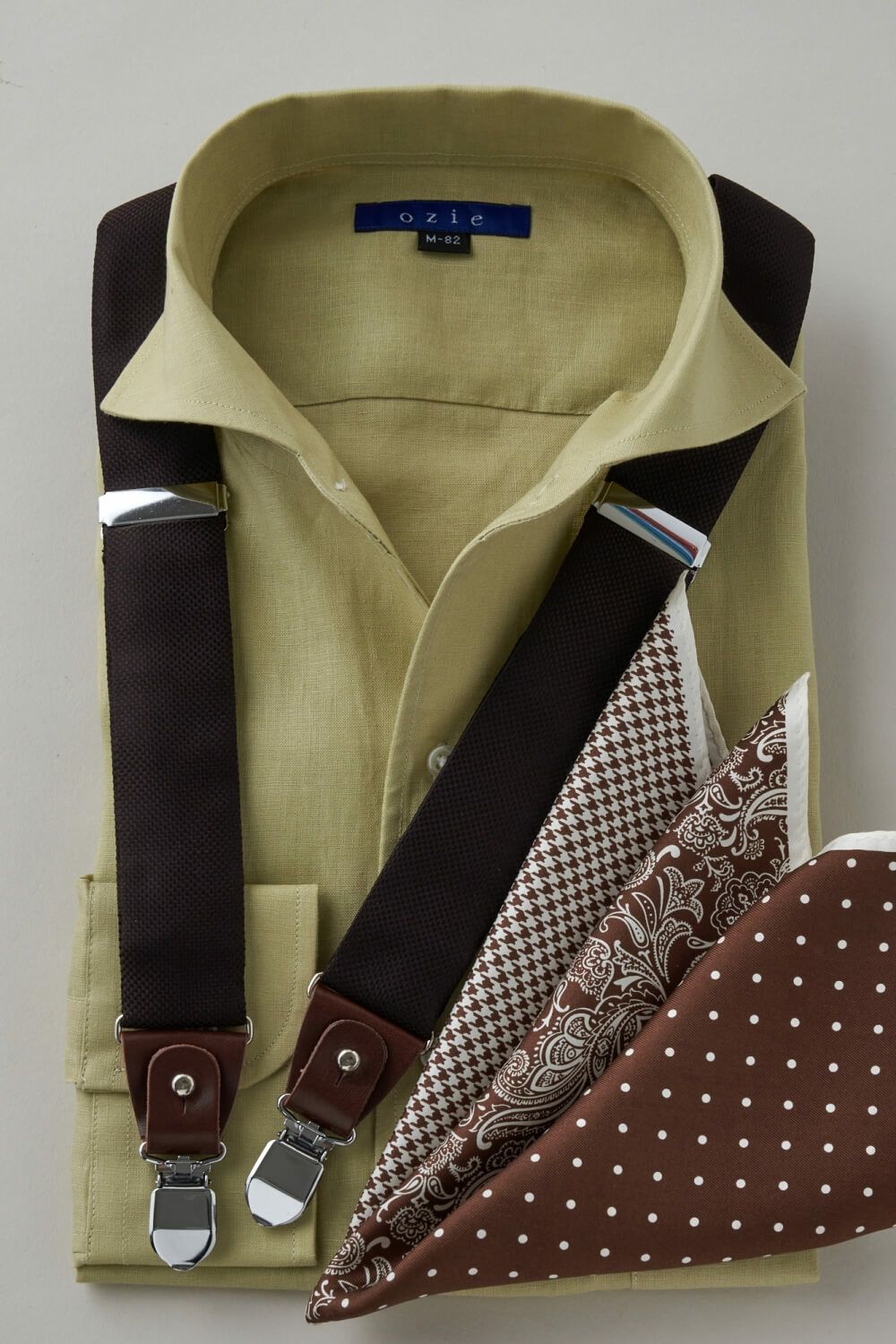 イタリアンカラーと広角なワイドカラーを掛け合わせたスタイリッシュなノーネクタイ専用の衿型です。