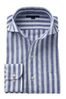 リネンシャツといえどもドレスシャツ(ワイシャツ)の仕様で生産しているため、衿元しっかり!