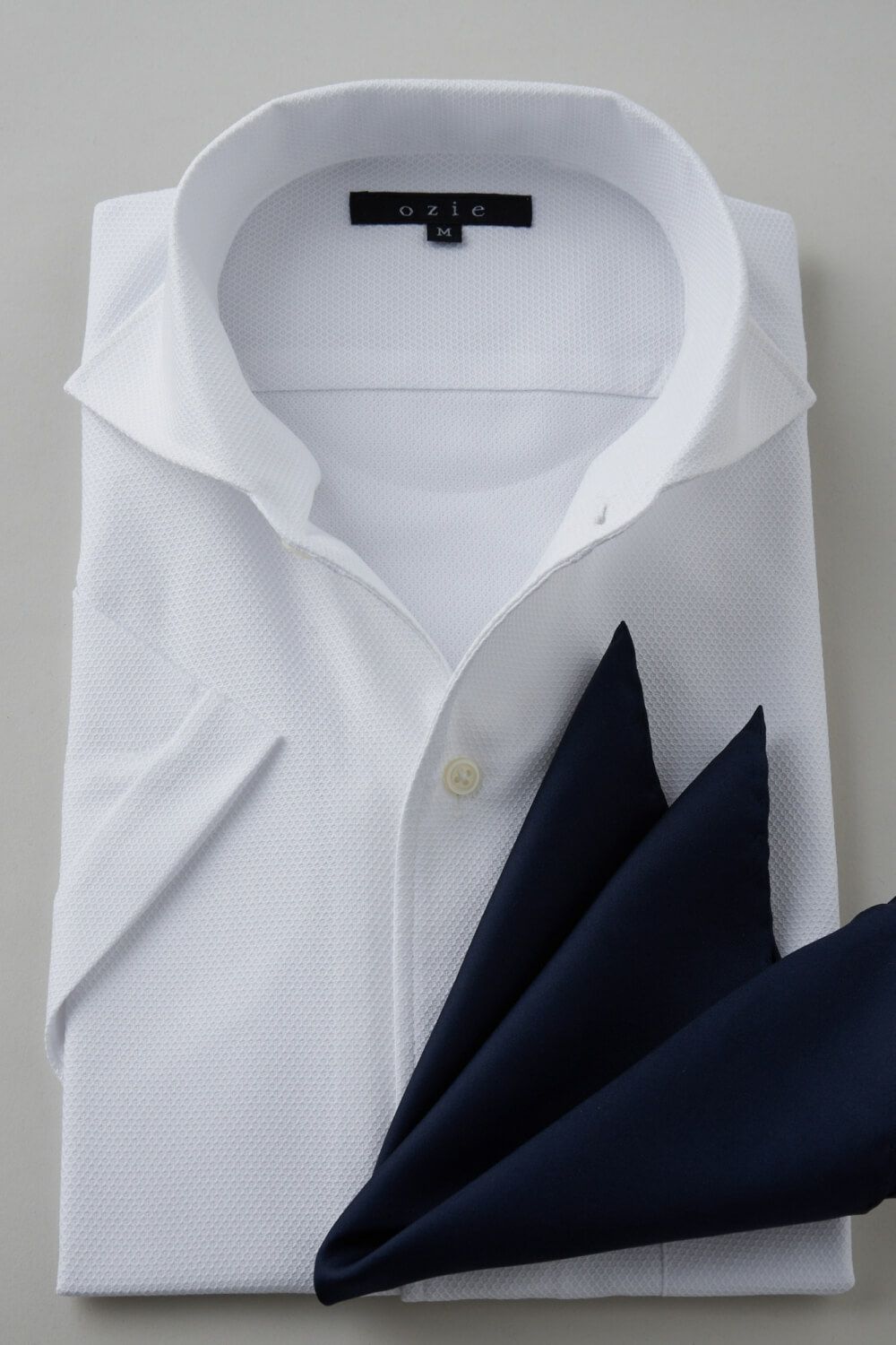 イタリアンカラーと広角なワイドカラーを掛け合わせたスタイリッシュなノーネクタイ専用の衿型です。