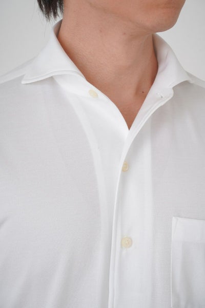 衿開きのきれいなノータイ専用オープンカラーのイタリアンカラー・ワイドカラータイプ