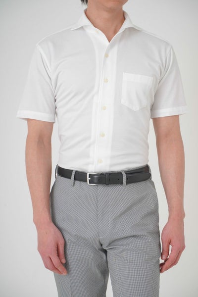見た目はワイシャツの定番生地ピンポイントオックスフォードのようで、通気性抜群の“ハニカムメッシュ“