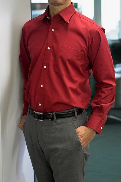綿の混率が高いダークトーンの形態安定レギュラーカラーシャツ