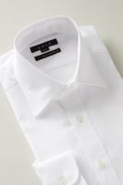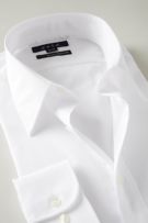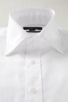プレミアムコットン&高級糸120番手双糸の白ブロード生地。シルクタッチのハイクオリティーなドレスシャツ。