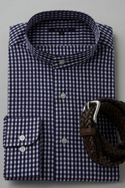 市場で減りつつある衿型で、希少性の高いスタンドカラーシャツ。