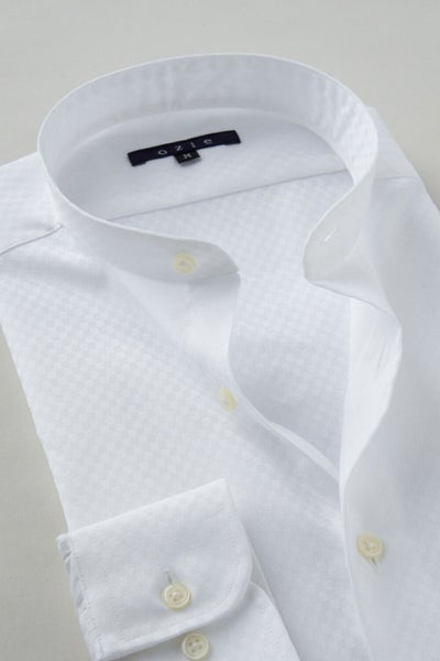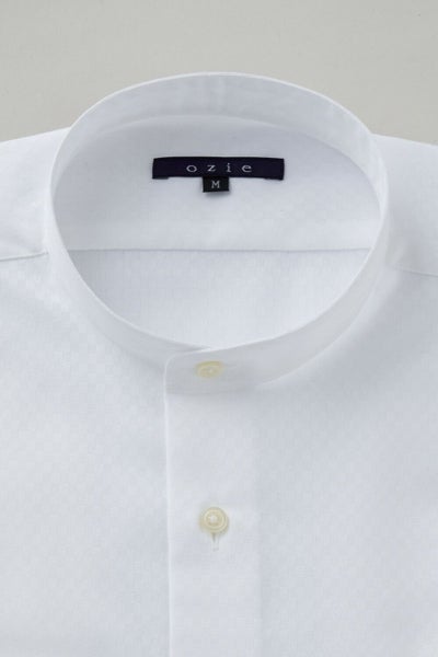 市場で減りつつある衿型で、希少性の高いスタンドカラーシャツ。