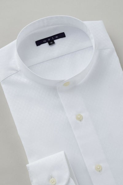 カジュアルのみならずジャケットスタイルにも最適なスタンドカラーシャツ