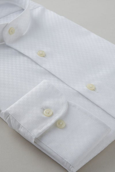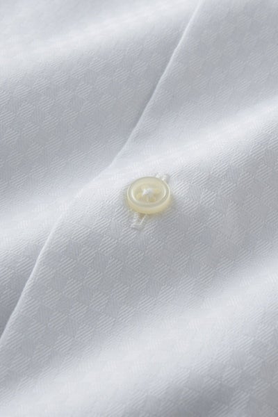 プレミアムコットン使用の綿100%に特殊な形態安定加工を施すことにより、ポリエステル混の形態安定シャツに近い防しわ性を実現しました