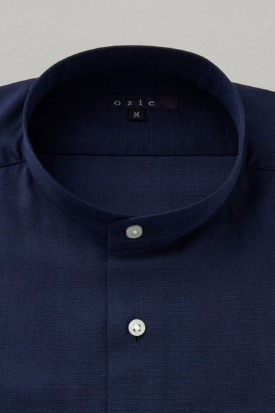 カジュアルのみならずジャケットスタイルにも最適なスタンドカラーシャツ