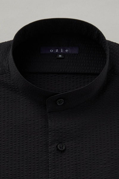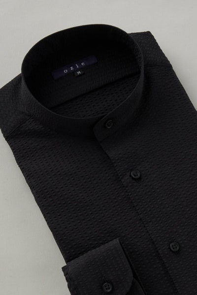 市場で減りつつある衿型で、希少性の高いスタンドカラーシャツ。